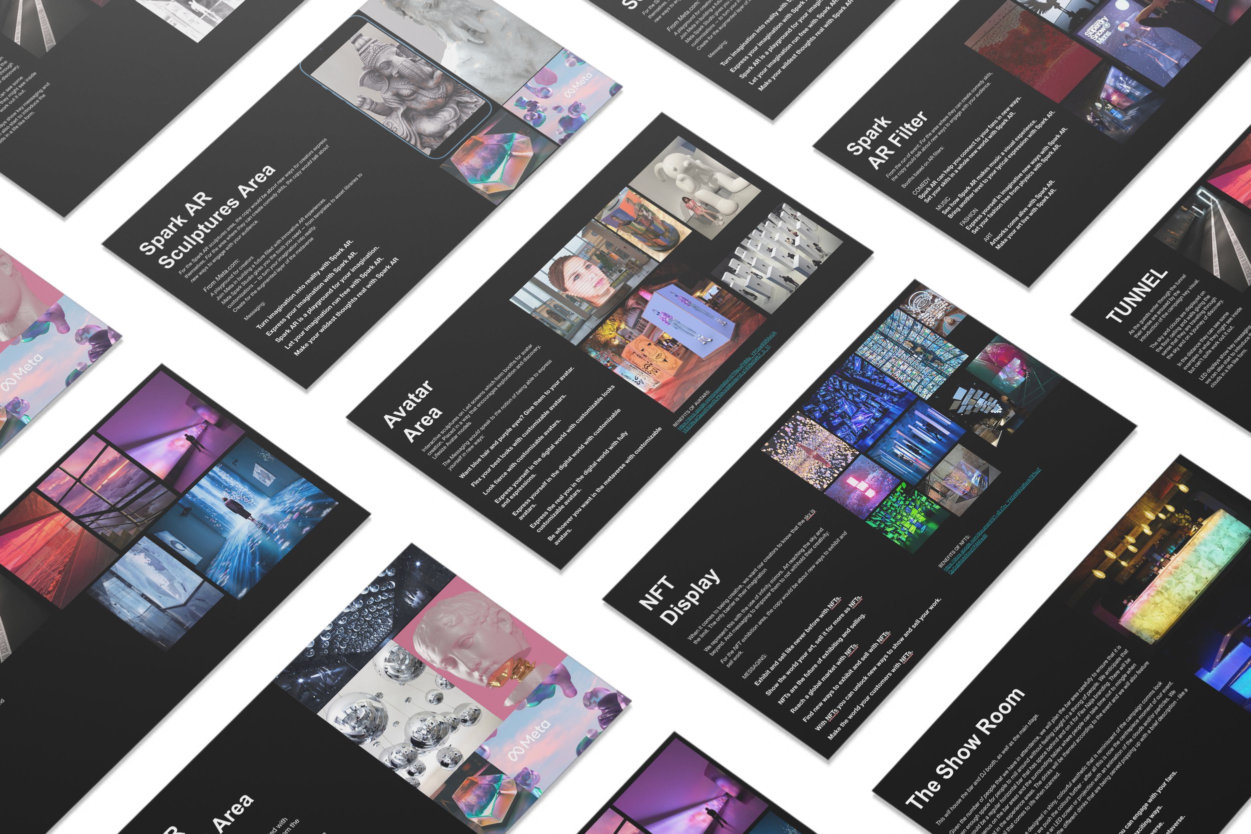A Meta Spark augmented reality (AR) space allowing people to explore and create AR filters and displays.